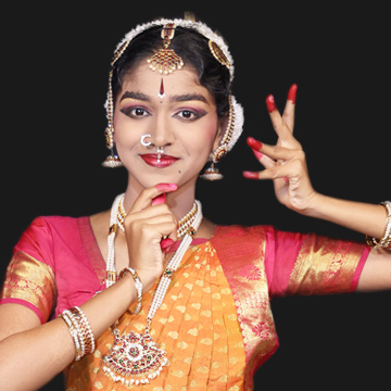 Pallavi means elaboration and is a pure dance item characterized by movements of lyrical grace and expressive beauty. It is based on a melodic framework (raga) that is soft, lilting, and melodious, creating a harmonious blend of music and movement. The dance unfolds through intricate and graceful passages that run parallel with rhythmic syllables sung musically, showcasing both the dancer’s skill and the raga’s charm. This Pallavi is set in Raga Khamaj and Taal Ek Tali.